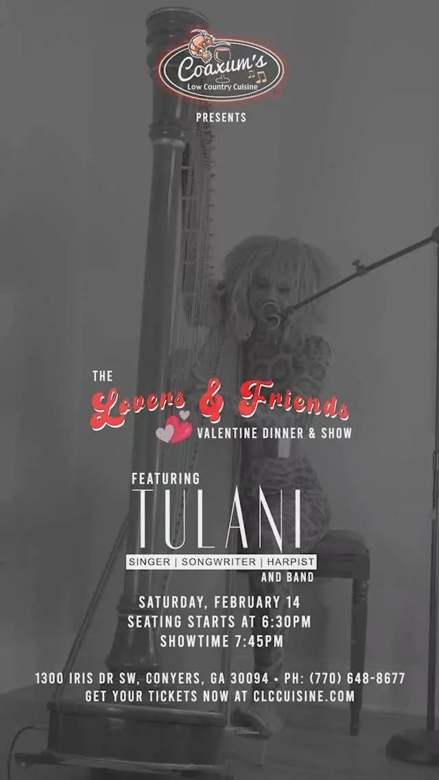 Tulani is a powerhouse R&B singer, songwriter and harpist whose music colors outside the lines. She can’t be put in a box! A high energy and electric entertainer, Tulani, has toured internationally with Lady Gaga and has opened up for Chaka Khan, Andra Day, CeeLo Green, Bobby Caldwell, Eddie Levert, Estelle, Wyclef Jean, Jill Scott, Stokley, Musiq Soulchild, Gary Clark Jr, Erykah Badu, Anderson .Paak & The Free Nationals, as well as George Clinton and Parliament Funkadelic to name a few.